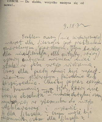 Czy możemy powiedzieć coś więcej o czytelniku na podstawie tych notatek, nie mając przy tym kompetencji grafologicznych? Po pierwsze to mężczyzna. Po drugie czytelnik bardzo dokładny i systematyczny, który nawet zakończenie lektury oznaczył datą i godziną: „przecz. 9 IX 72., godz. 17.22”. W pierwszej chwili wziąłem to za rodzaj dziwactwa, ale potem się zorientowałem, że data jest nieprzypadkowa. Otóż to rocznica śmierci Czechowicza, który właśnie 9 września 1939 roku zginął w Lublinie w czasie bombardowania miasta. Czytelnik przywiązywał więc zapewne wagę do symboli i magii liczb.